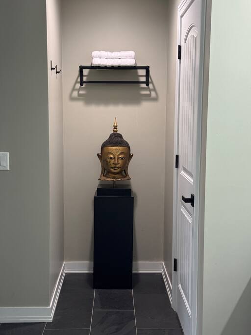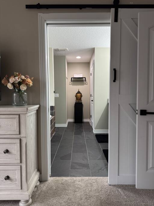 Located on the main floor, this cozy guest room offers privacy and comfort, ideal for guests who prefer easy access without stairs.