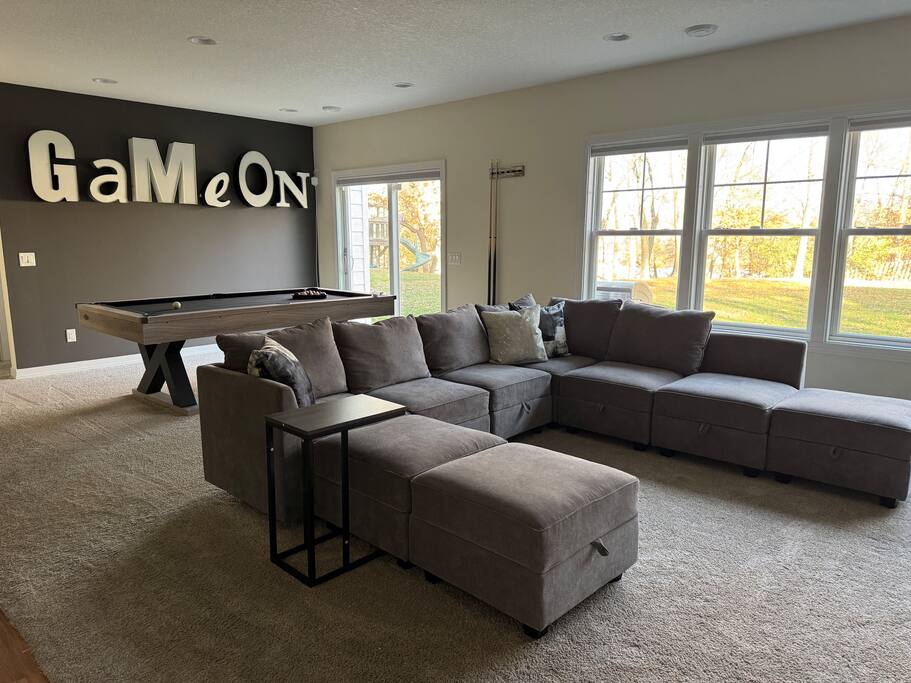 The ultimate entertainment space! Enjoy a wet bar with a full-size fridge, pool table, board games, and even a popcorn machine with supplies — ideal for family nights or friendly competitions. The lounge area offers cozy seating and a relaxed atmosphere for everyone to enjoy.