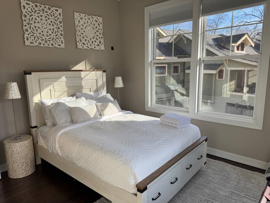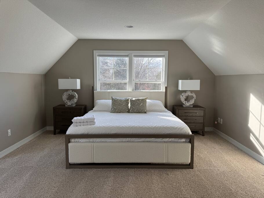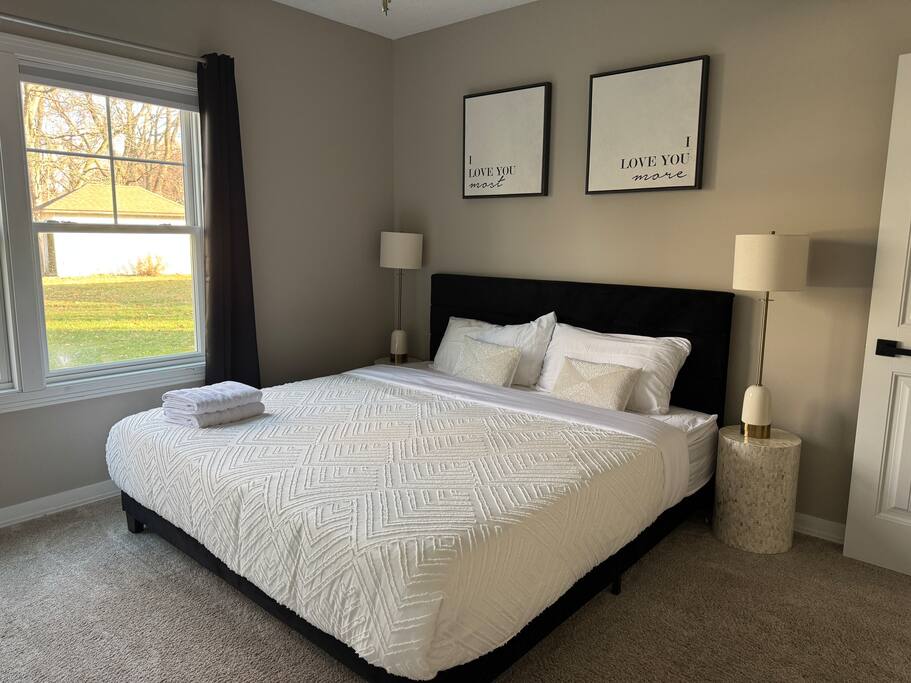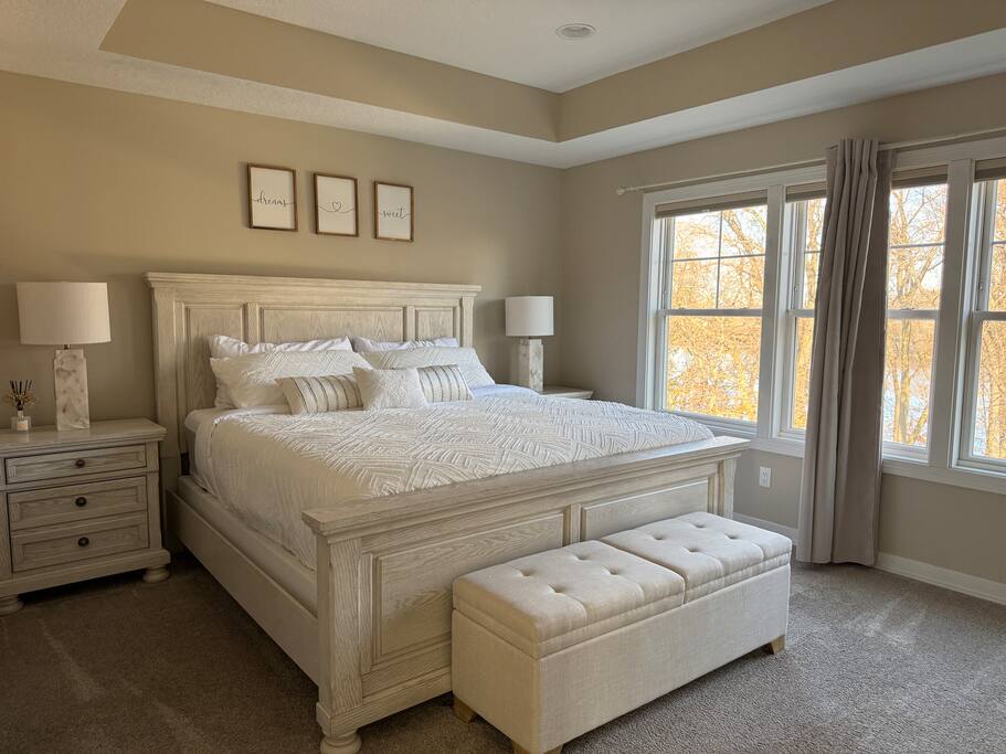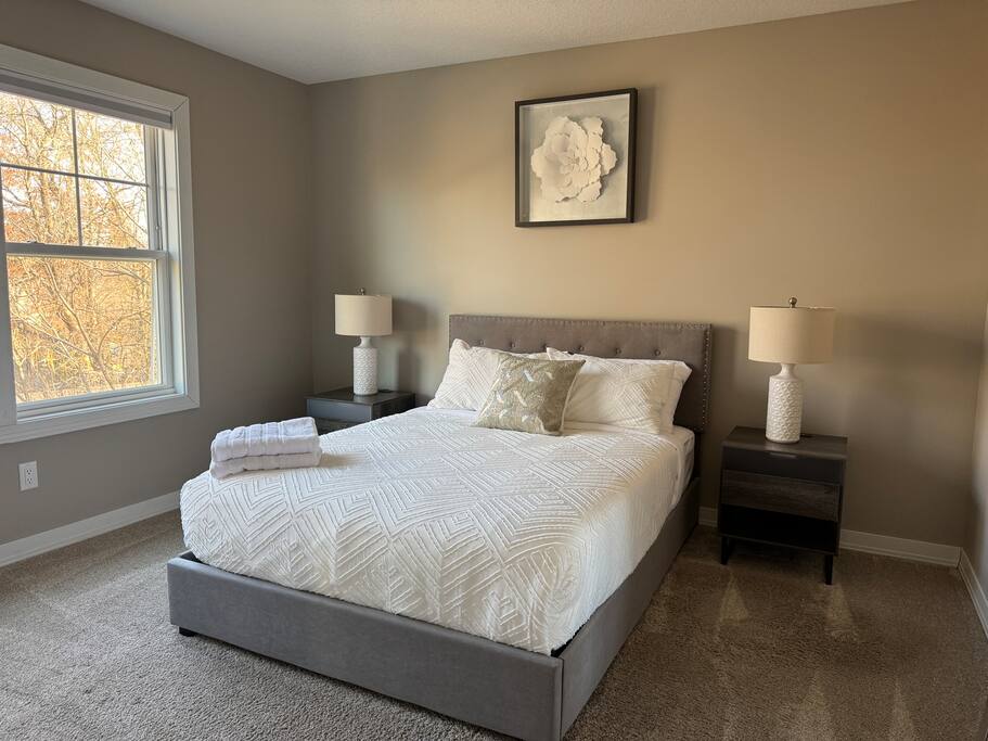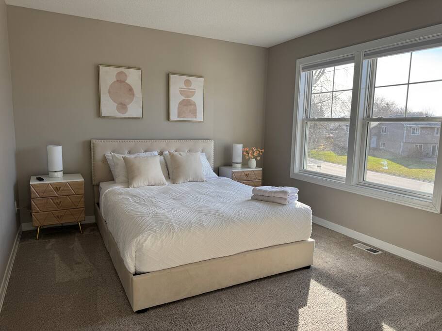 Spacious 6-bedroom home in the heart of Maple Grove, MN, perfect for families, groups, or long-term stays! This beautiful three-level retreat features three master suites, a fully equipped kitchen, game-filled recreation room, and ample parking for up to 6 vehicles. Thoughtfully designed for comfort, connection, and relaxation – whether you’re gathering in the open-concept living area or winding down in the luxurious master suite.